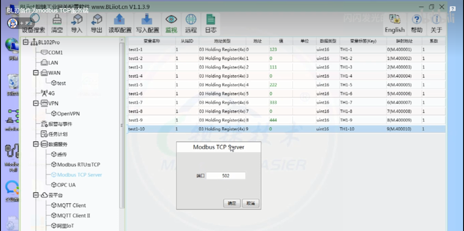 【視頻講解】工業(yè)智能網(wǎng)關(guān)BL102作為modbus TCP服務(wù)端從接口采集數(shù)據(jù)